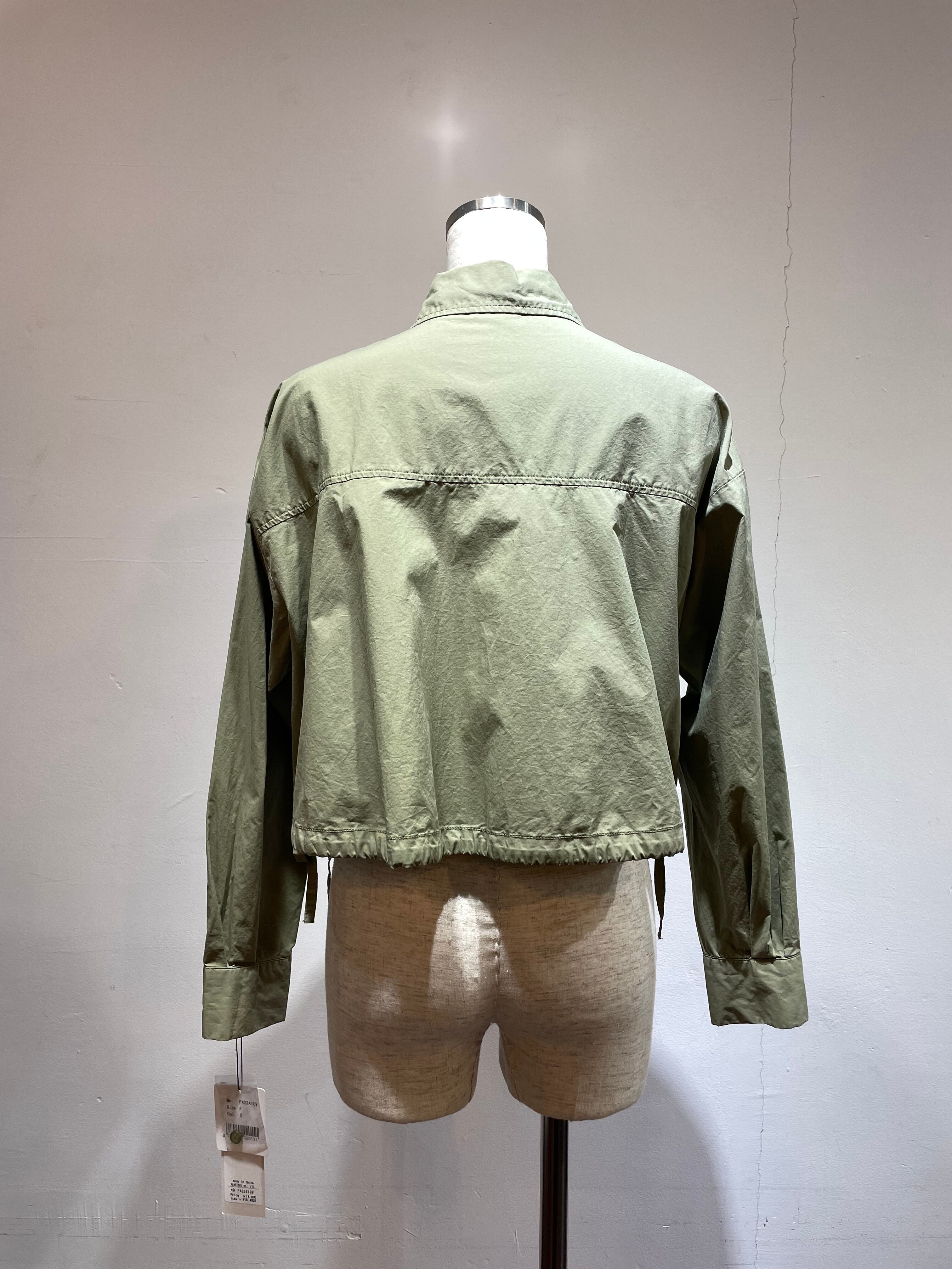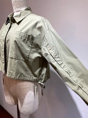 袖内側ボタンショートブラウス カーキ