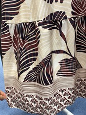 ボタニカル柄が魅力の「ボタニカルコットンワンピース」は、肌触りの良いコットン素材で仕立てられており、フレアデザインのスカートが特徴です。程よいフィット&フレアのシルエットが女性らしさを引き立て、カジュアルから特別なお出かけまで、幅広くご着用いただけるアイテムです。