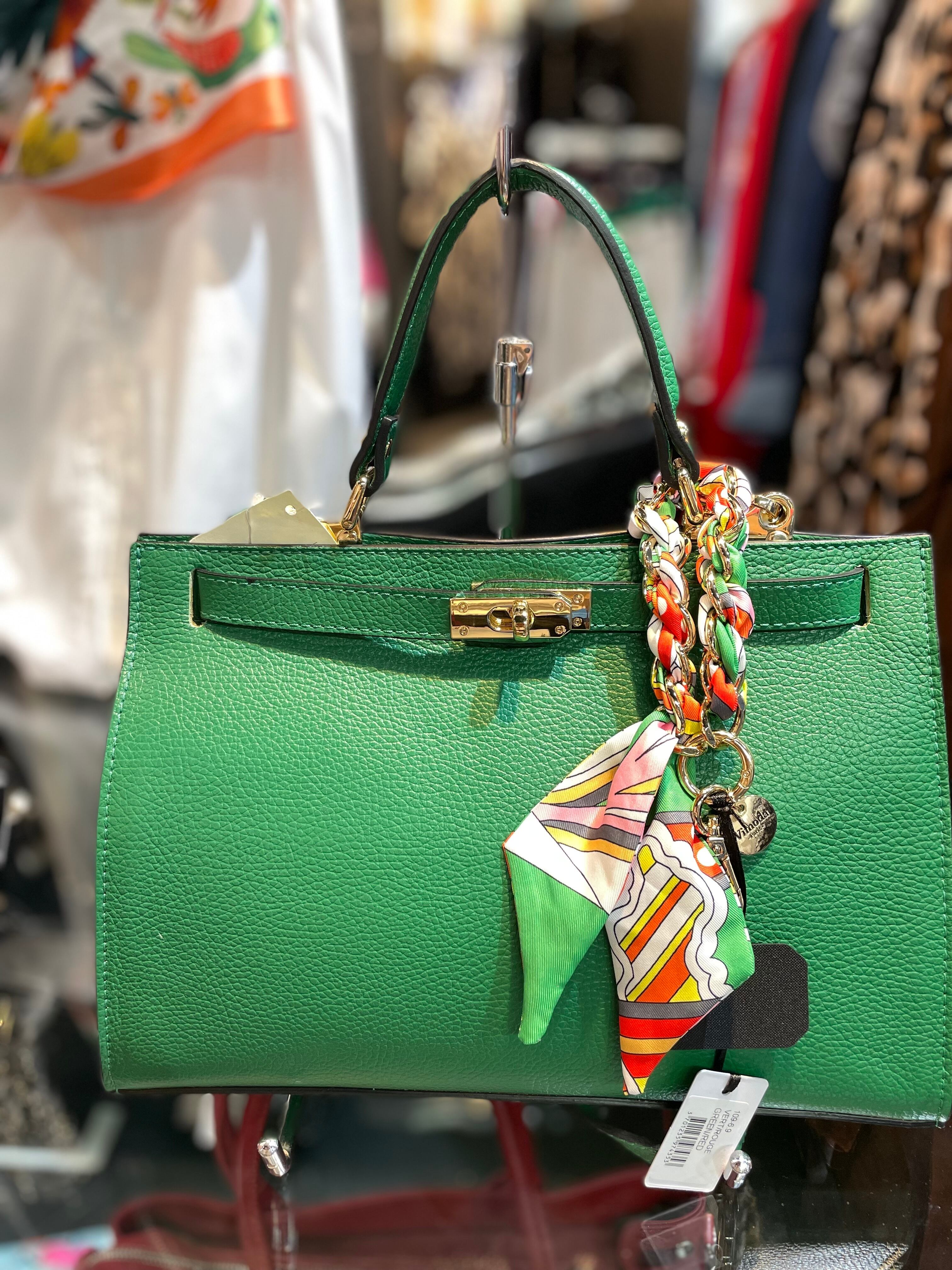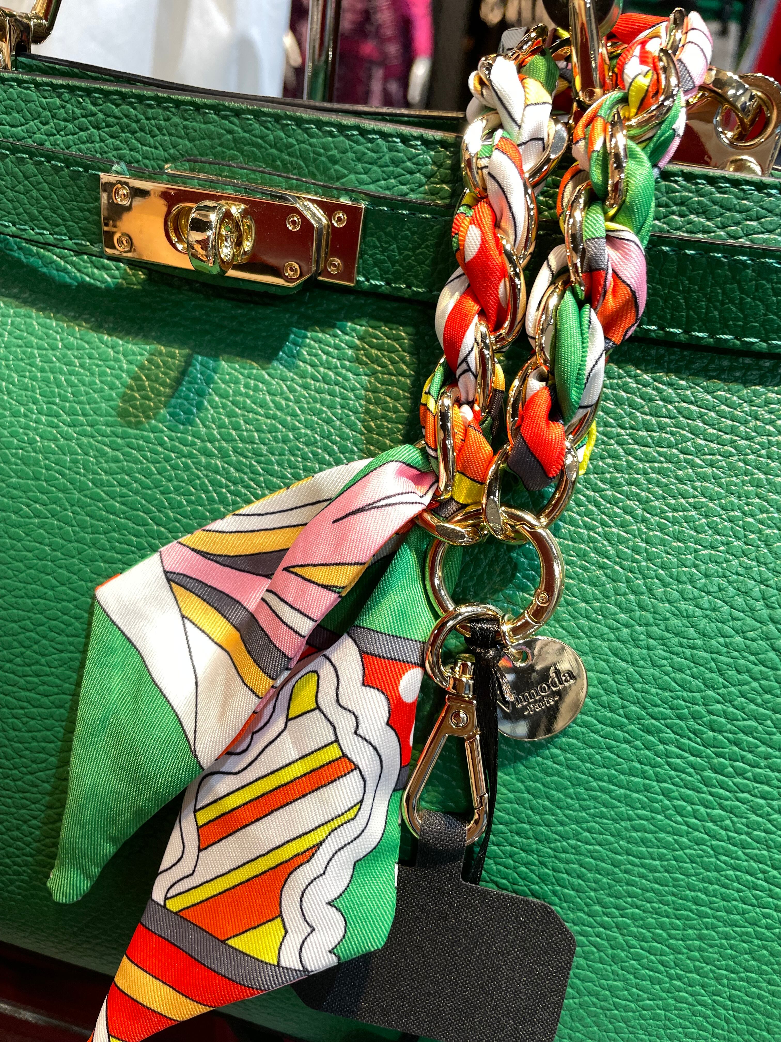 【即納】スカーフ編み込みチャーム GRN×OR