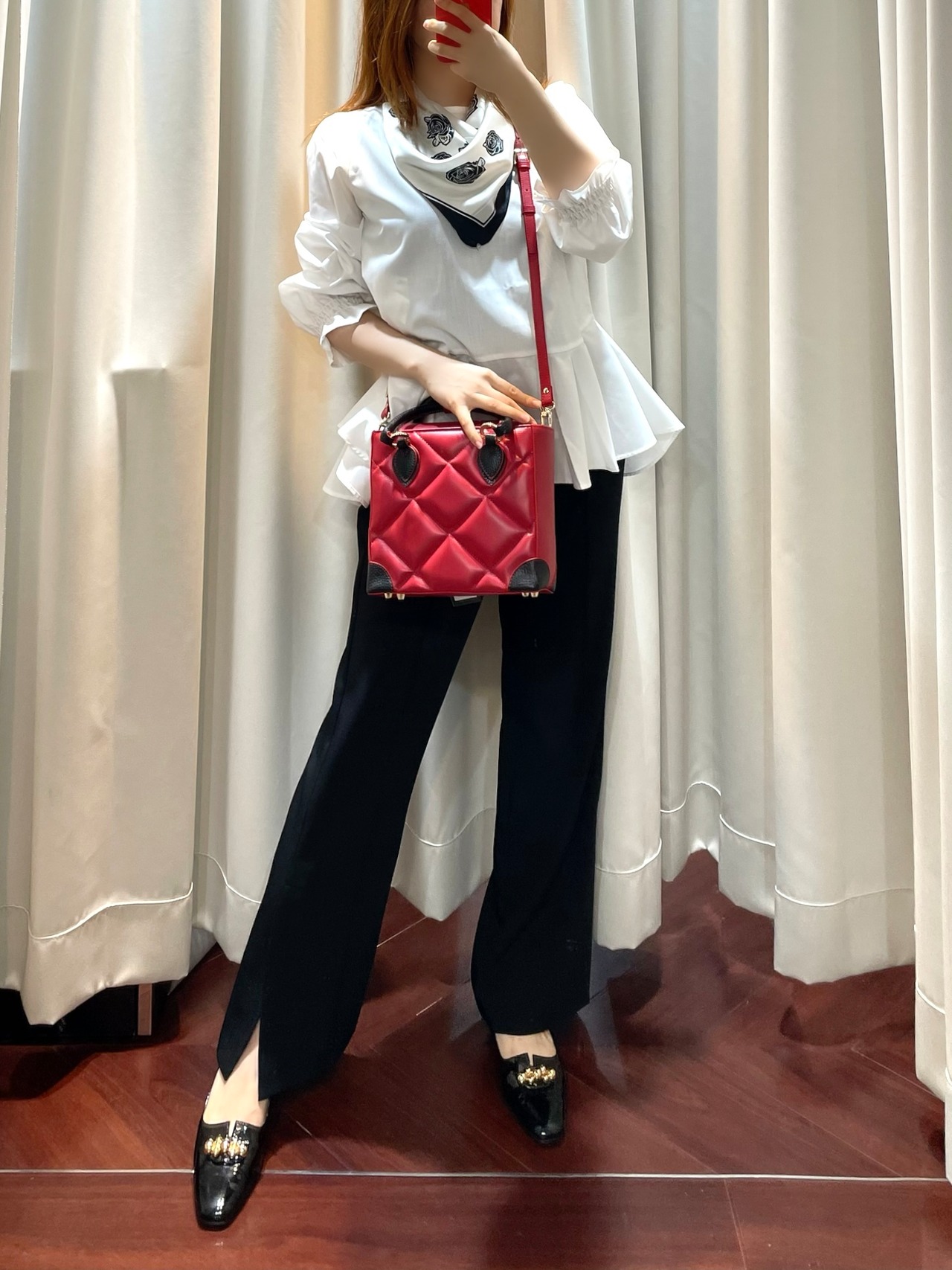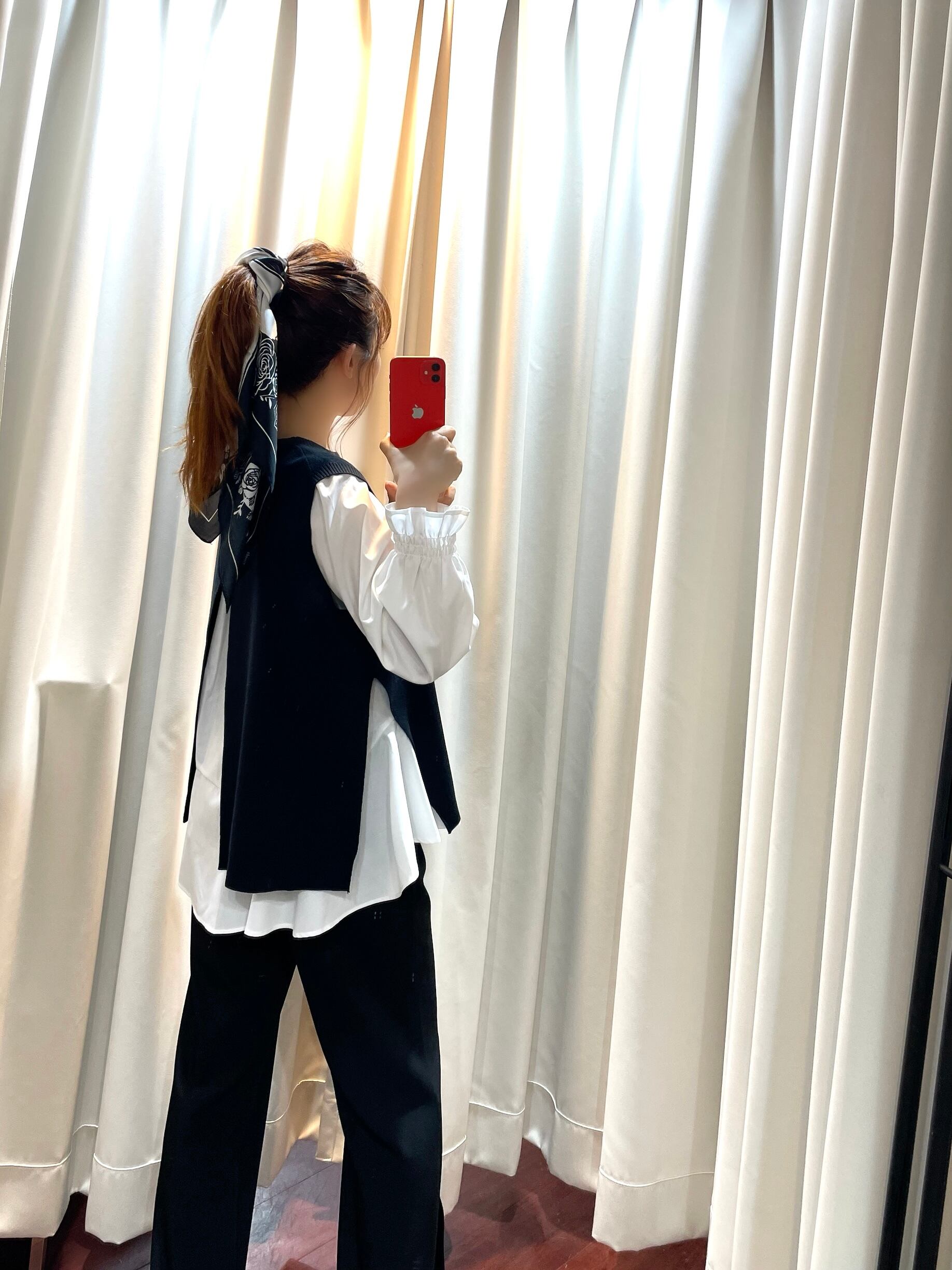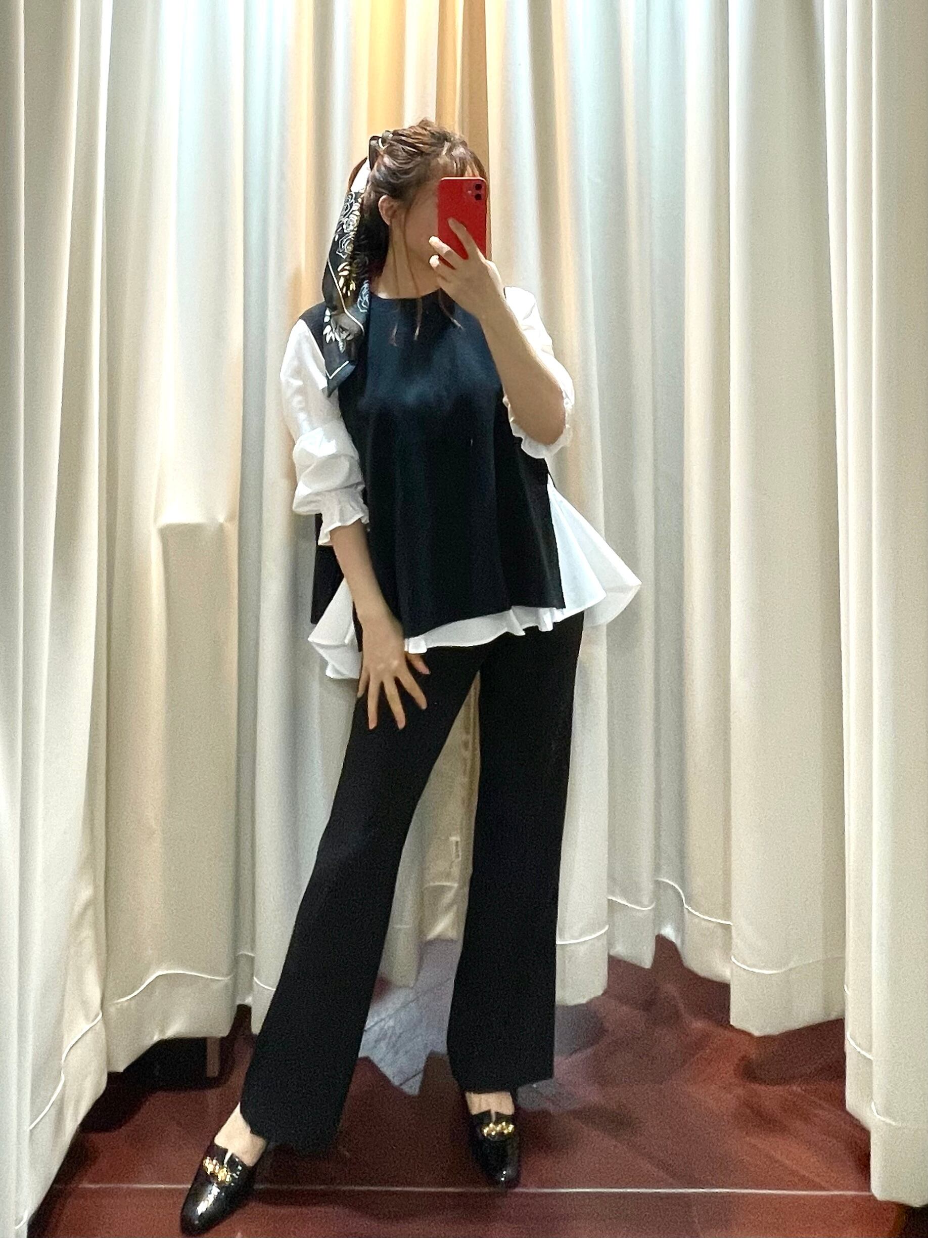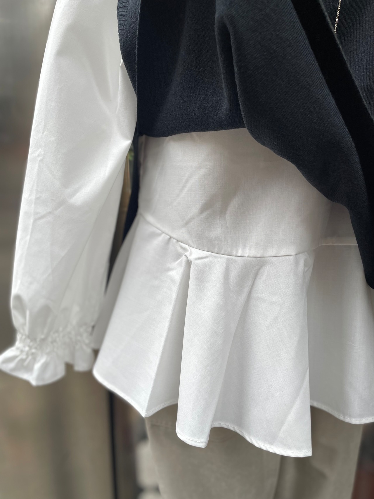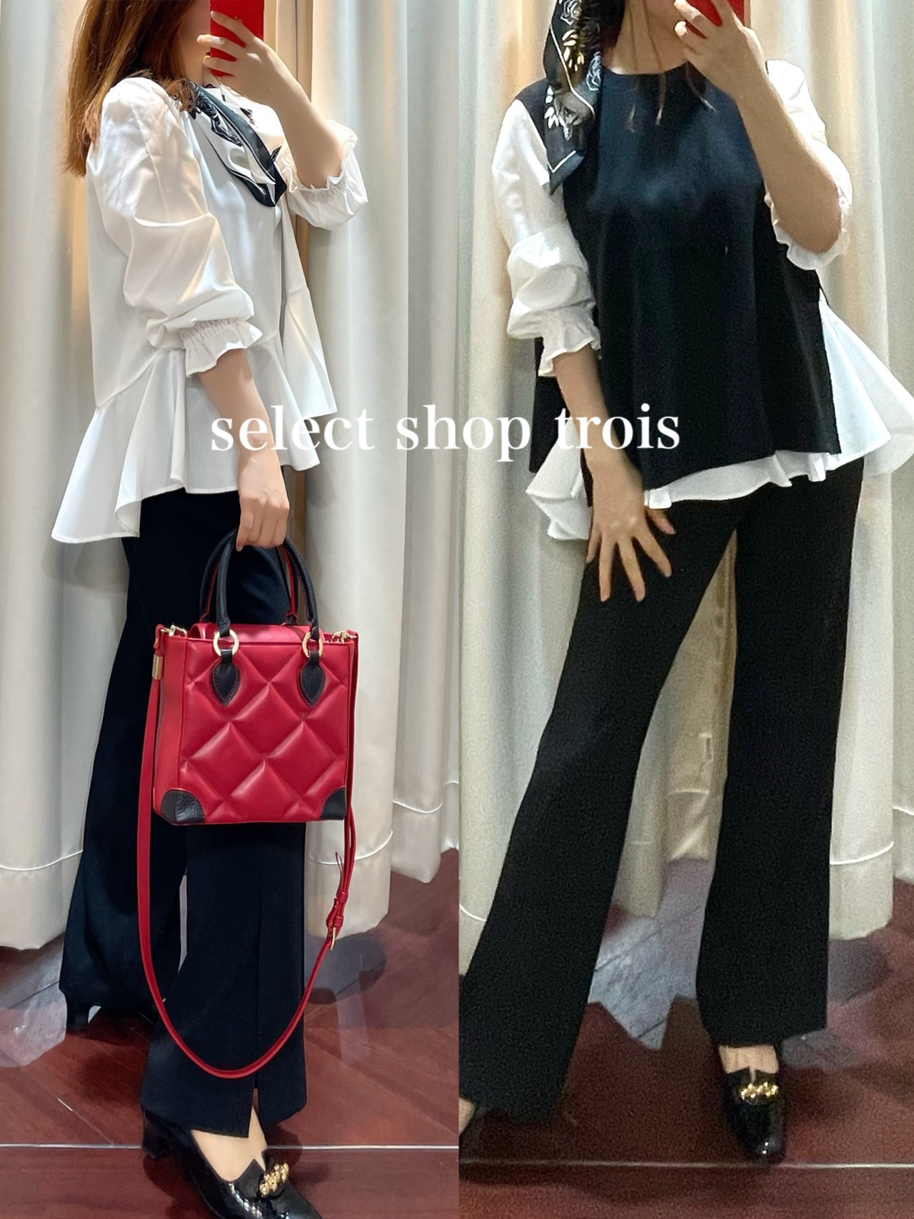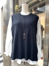 【即納】ブラウスベストアンサンブルWH×BK