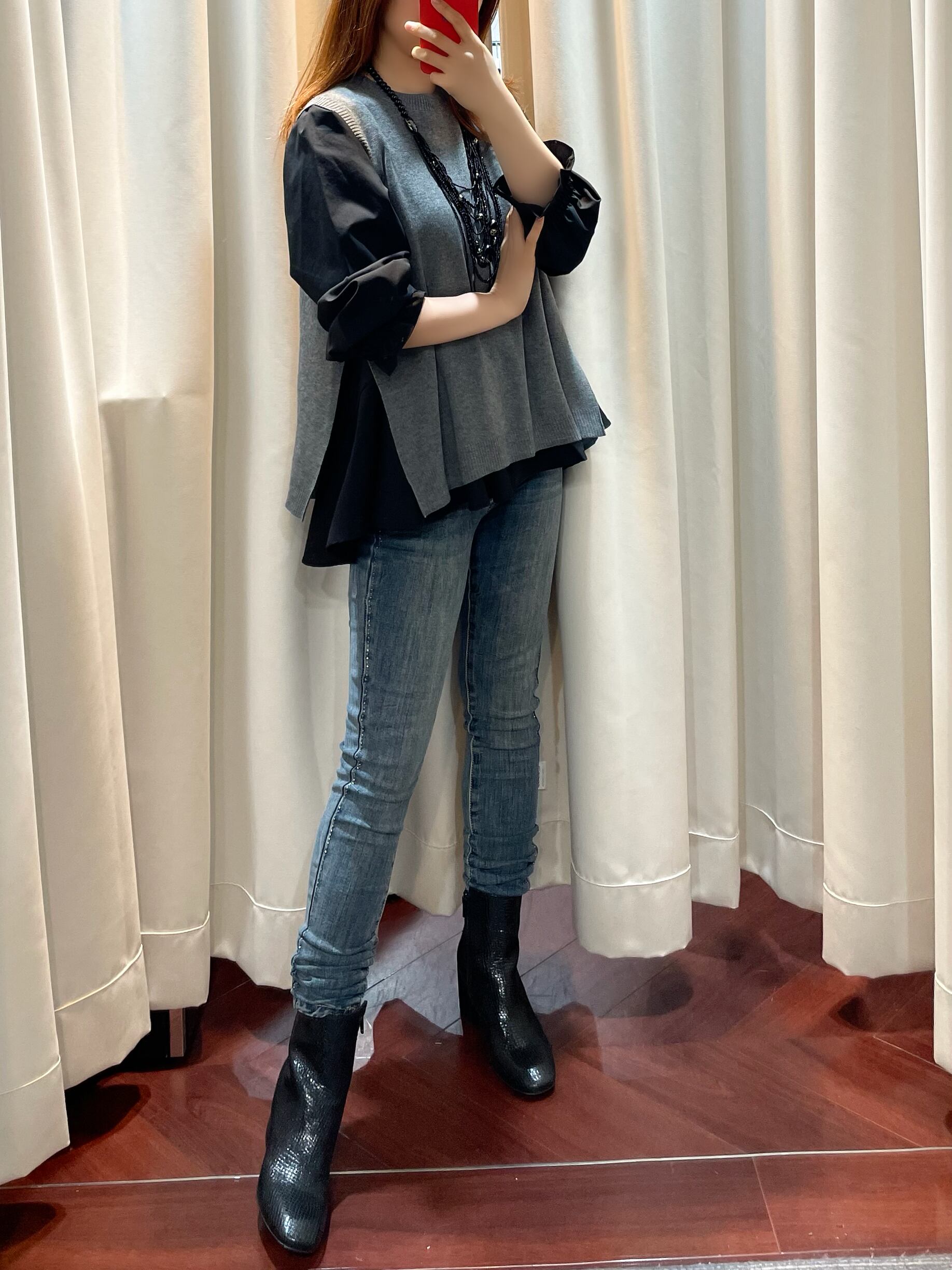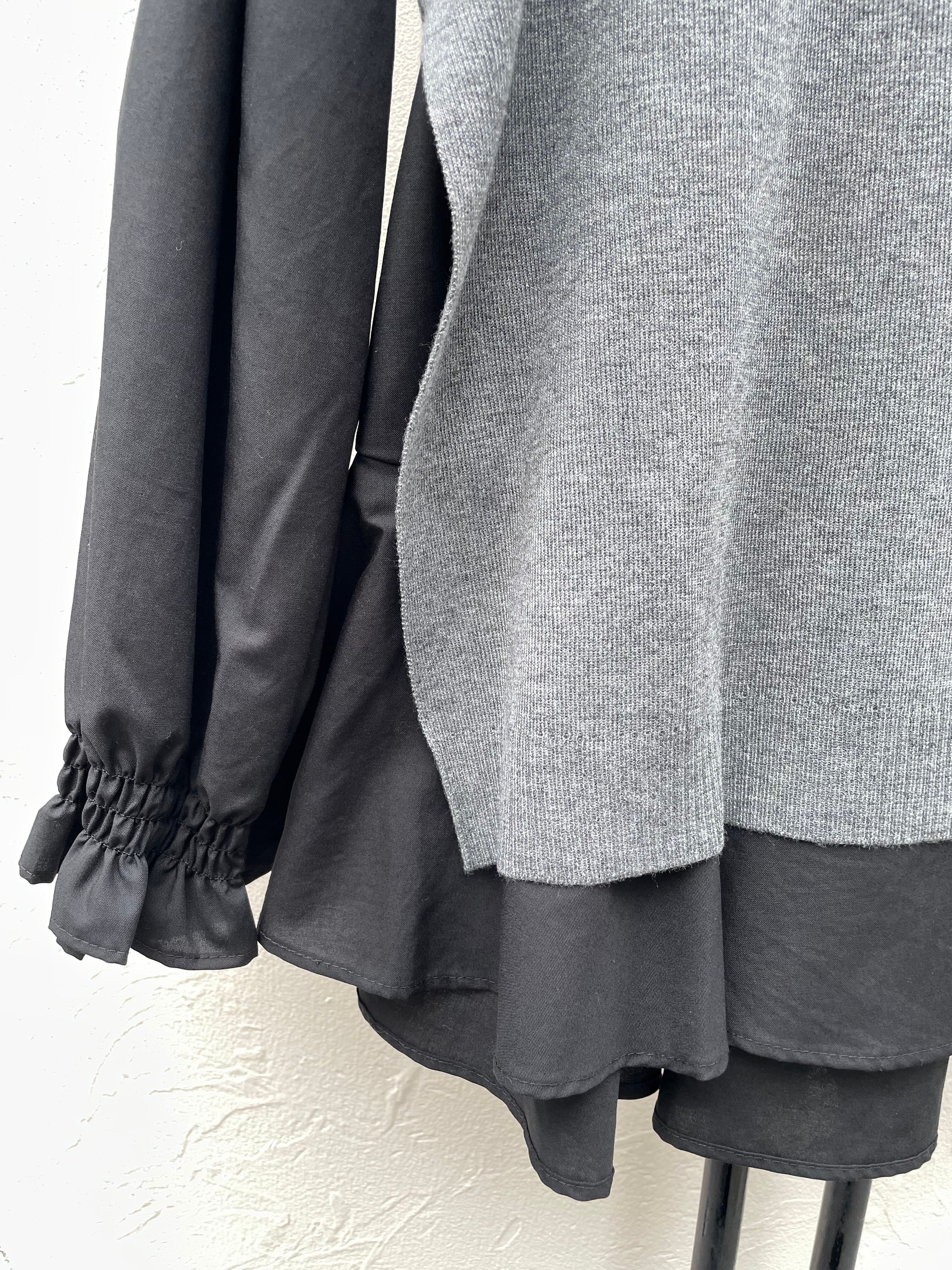 【即納】ブラウスベストアンサンブルBK×G