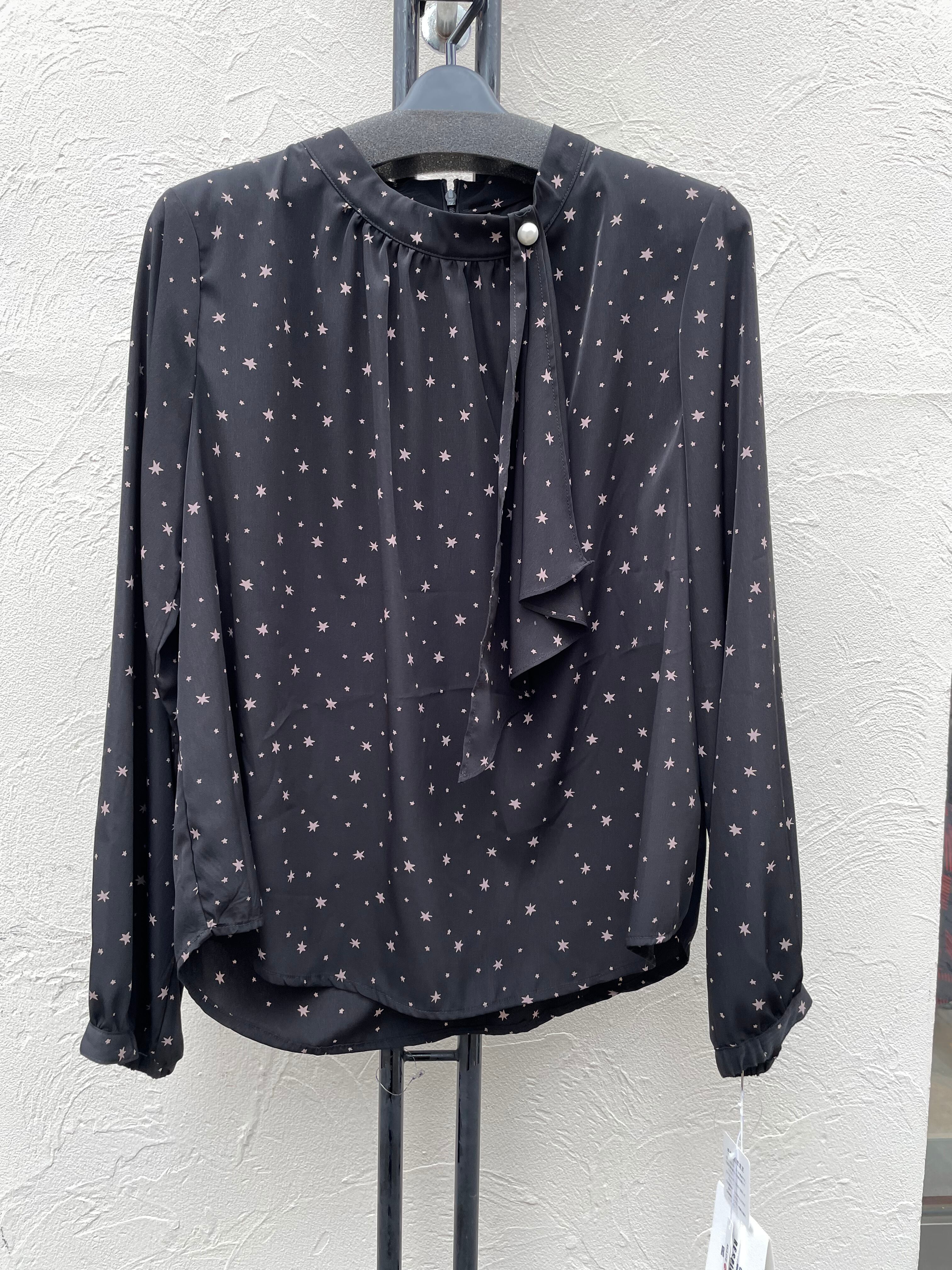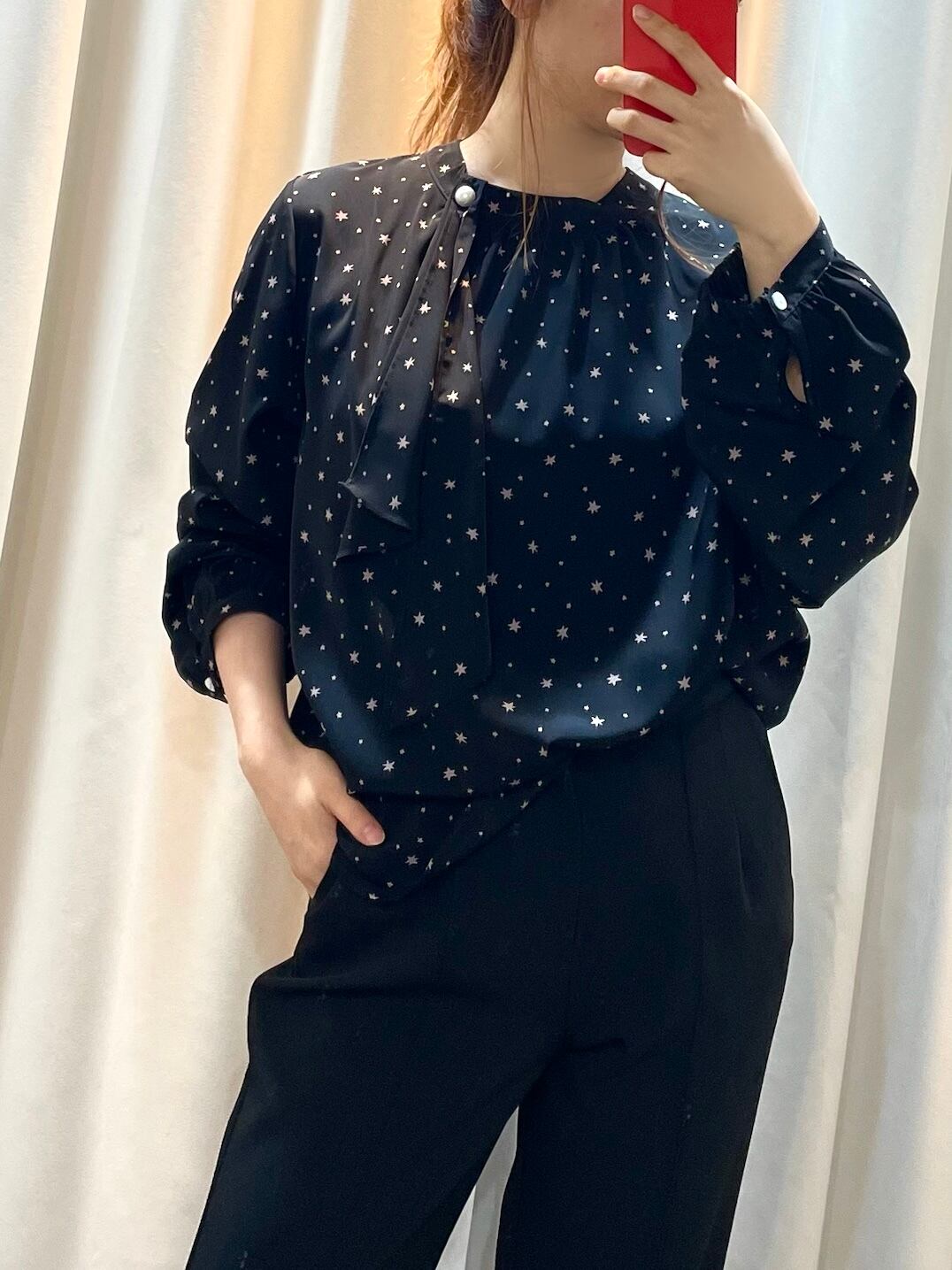 エレガントな「スターブラウス ブラック」は、とろみのあるマットサテン素材を使用した美しい一枚です! シンプルながらも存在感のあるデザインで、様々なシーンにマッチします。バックジッパーで着脱もスムーズ、さらに取り外し可能なタイ付きで多様なスタイリングが楽しめます。
