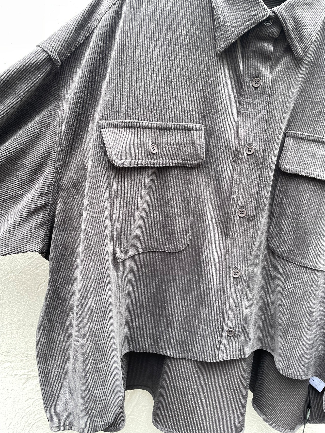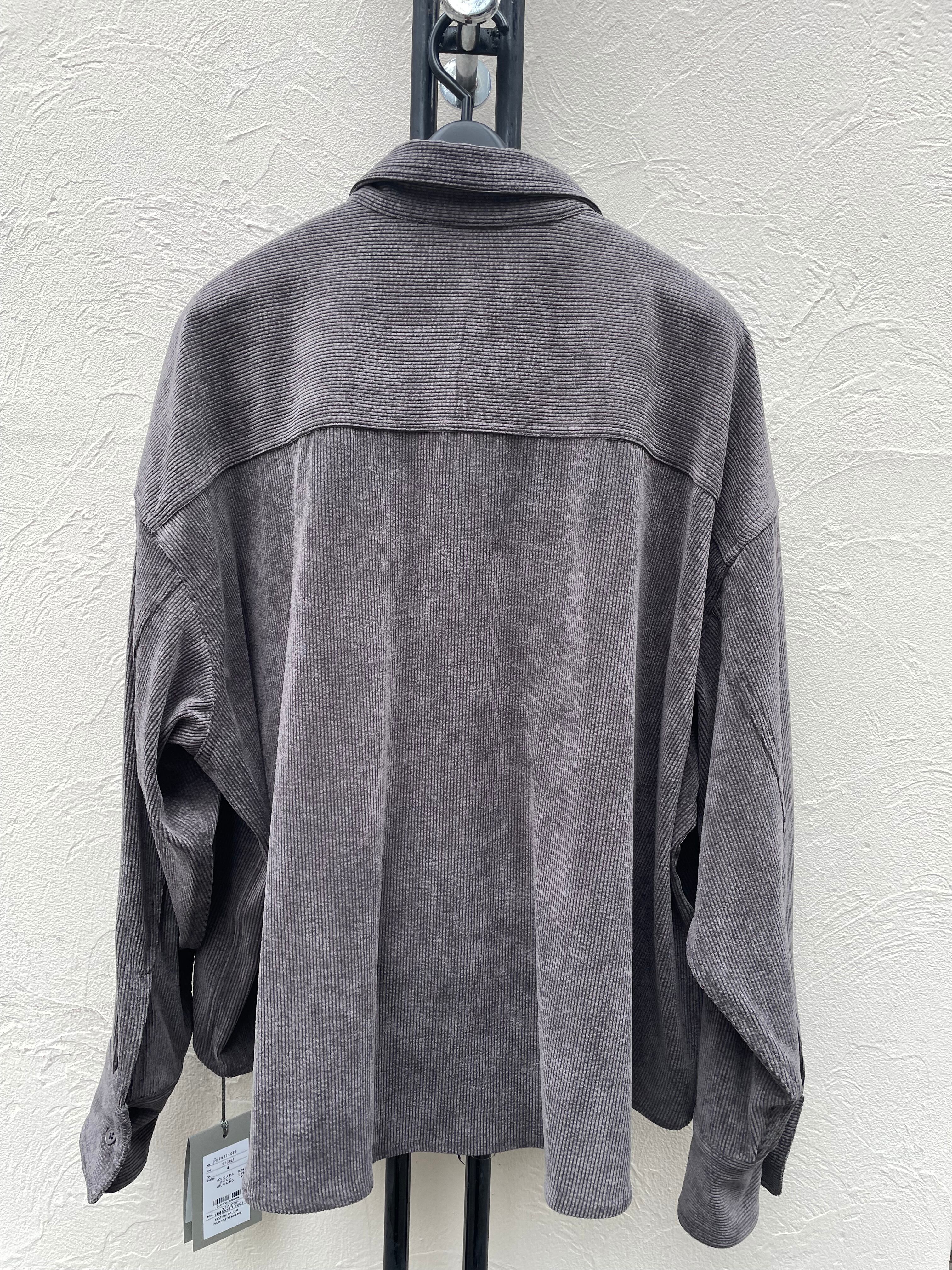 スタイリッシュな「コーデュロイシャツジャケット チャコール」は、コーデュロイ素材ですが厚過ぎず軽やかな着心地です。オーバーサイズのリラックス感のあるシルエットで、大人カジュアルなおしゃれさがおすすめです。季節の変わり目にも最適なアイテムです。