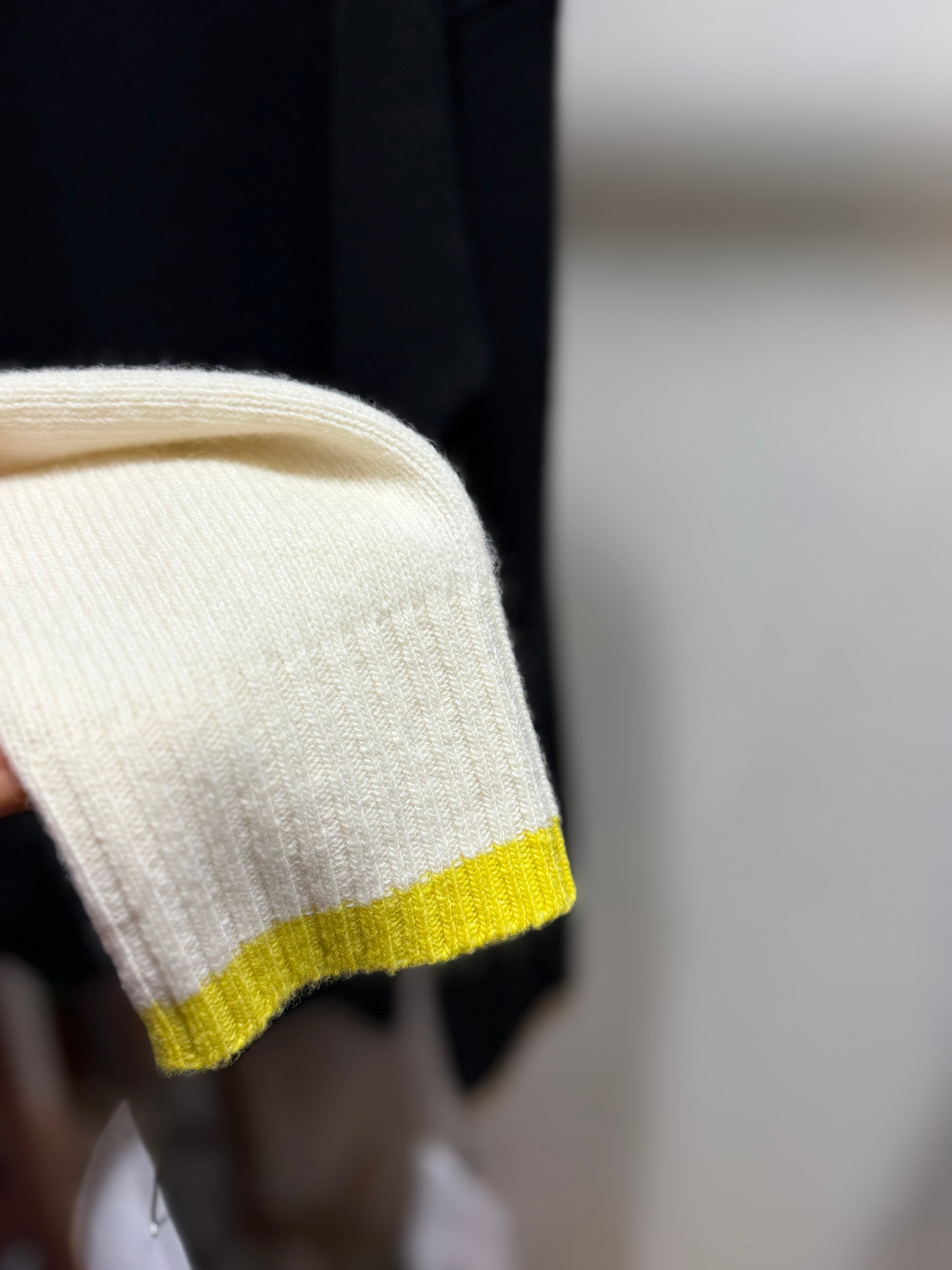 ウールとカシミヤの贅沢な混合素材を使用した「Vネック袖先カラーカシミヤ混セーター」は、肌触りの良さと抜群の暖かさを兼ね備えた一着です! ハイゲージで編まれた上品なVネックデザインは、シンプルながらも決して飽きることのないスタイルを提供します。袖先のカラー切替のワンポイントもステキです。カジュアルな日常使いから特別なお出かけまで、幅広くご利用いただけるアイテムです。