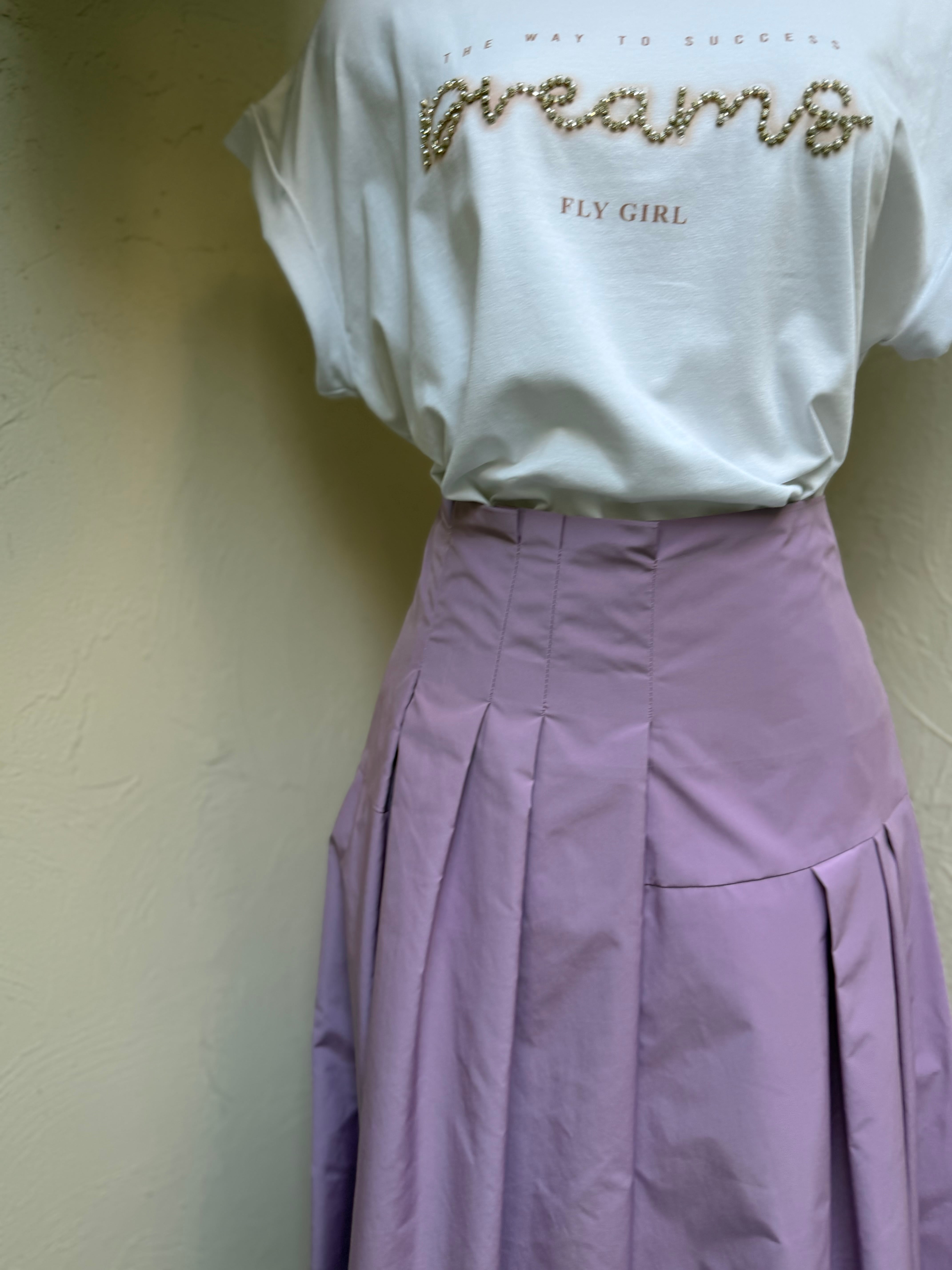 キラキラのロゴが目を引く華やかで上品なカットソーは、着心地の良い軽やかな生地感で、デイリーにもおでかけにもおすすめです。